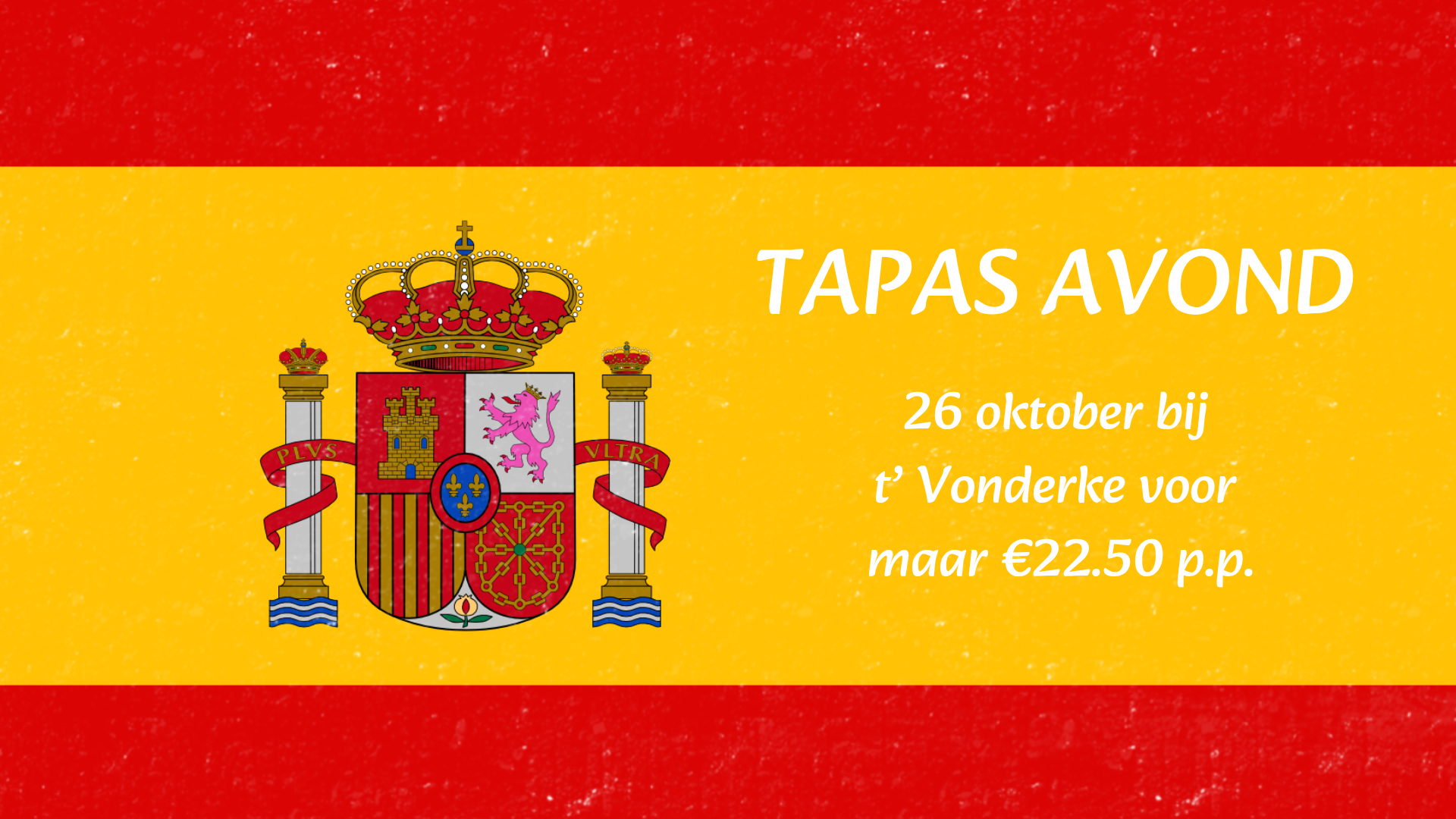 Tapas avond Kom zondag 26 oktober genieten van een avond gevuld met gezelligheid en heerlijk